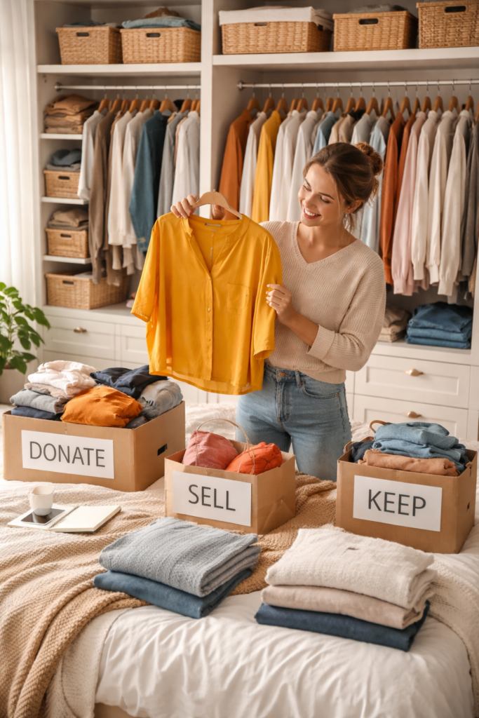You don’t have to redo the entire process every year. Simple mini-reviews — even 15–30 minutes monthly — can keep closet clutter at bay.